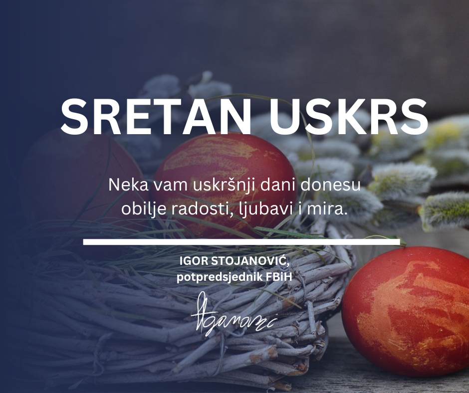Svim katolicima u Bosni i Hercegovini čestitam Uskrs, uz iskrene želje za dobro zdravlje, sreću i blagostanje. Neka ovaj praznik donese mir, nadu i ljubav u srca svih ljudi.